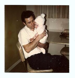 I came across this photo recently while going through a box of family photographs. I was struck by how Dad is holding me so protectively, in a tender yet fierce grip. His eyes closed, it’s as if he’s trying to sear that moment into his memory and heart forever. I hope he was able to, and to recall it as the darkness of dementia swept over him in the last years of his life.