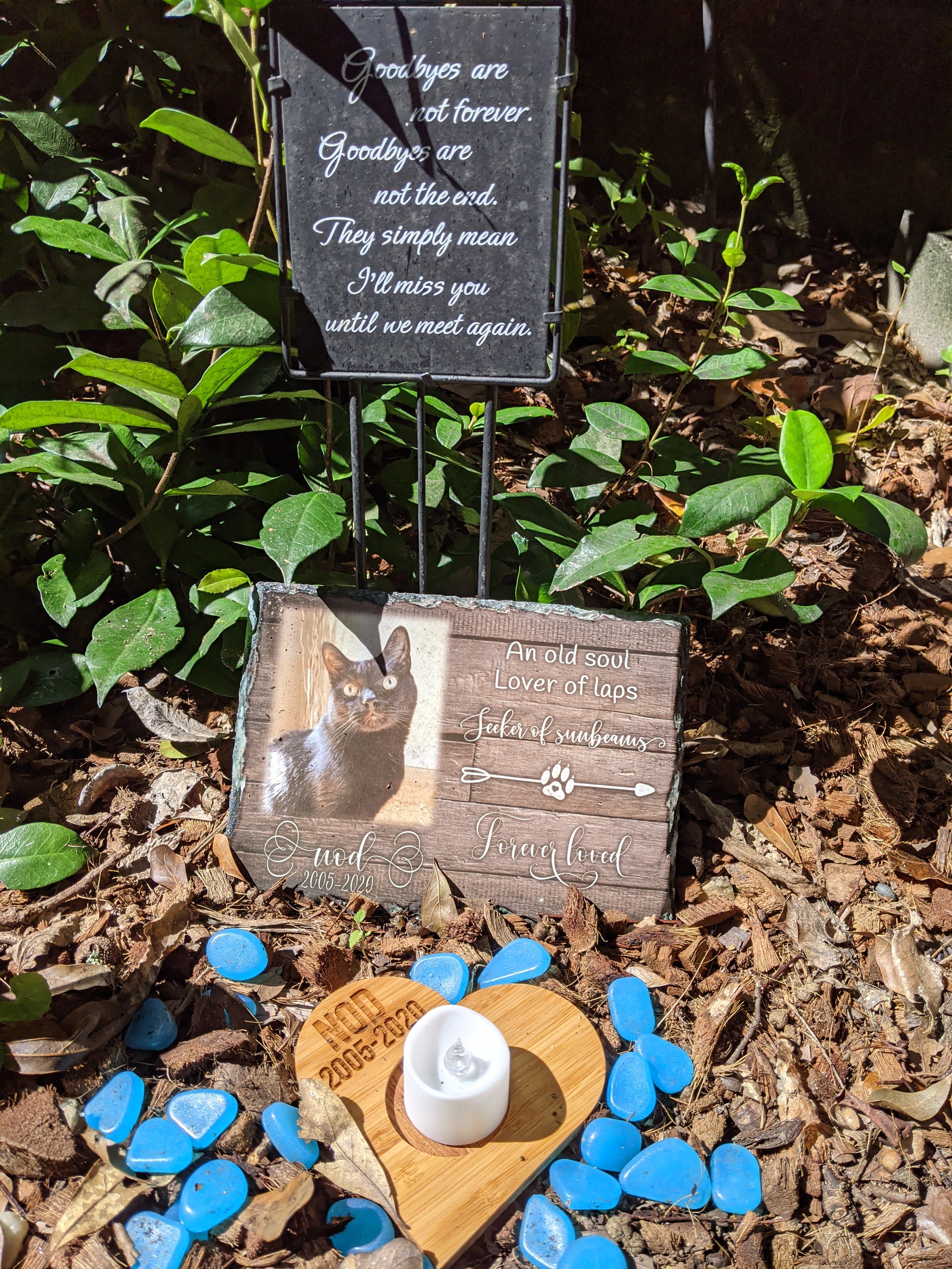During a typical work day, a 5 to 10 minute dog walk may be my only respite from all of the craziness. I make a point to seek the vibrant blooms, to watch the squirrels scamper up the trees, a butterfly flutter by my hand. Now that the weather has cooled off and the mosquitoes are leaving, I sit in a cozy nook I made for myself in the yard, where I can look upon the memorial area I’ve created for loved ones and watch the activity at the busy bird feeder. I find these moments grounding and rewarding.