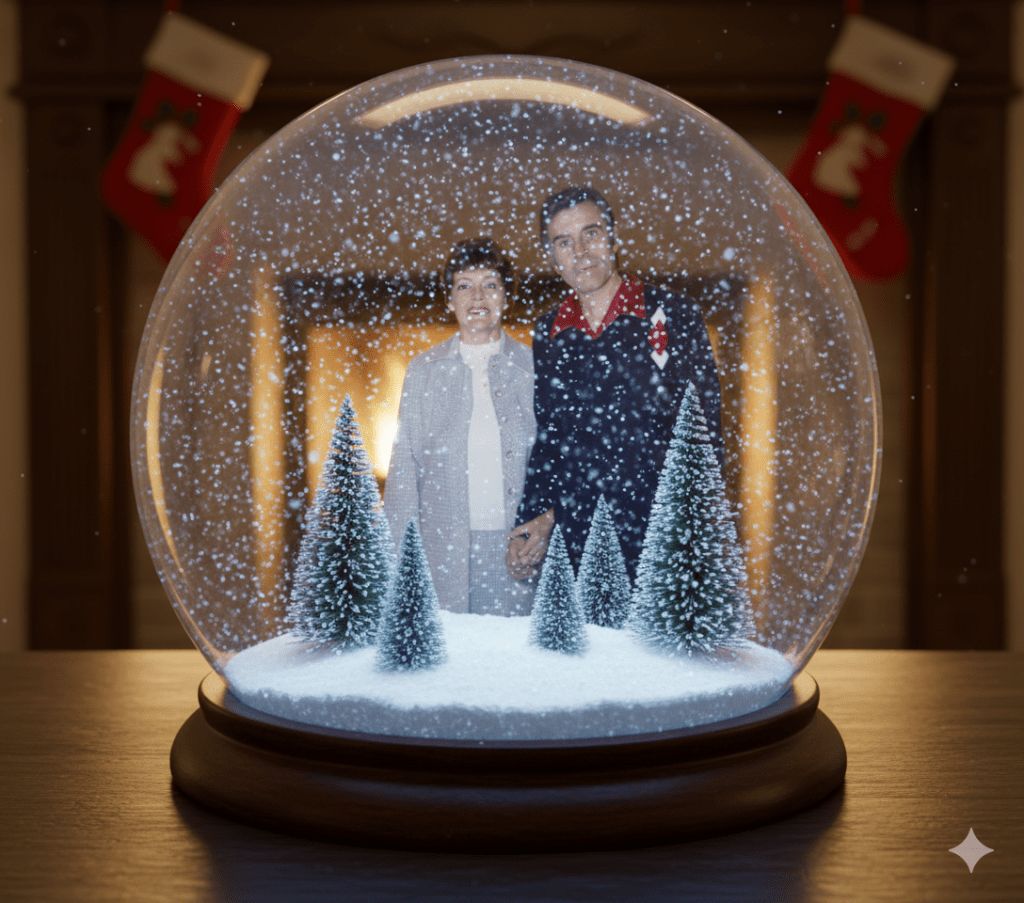 For those of us grieving the loss of a loved one this holiday season, may you find some sense of peace and solace in honoring your loved one’s memory in a way that is meaningful to you. For me, that is looking at photos from my childhood. I created a virtual snow globe featuring a photo of my parents at Christmas.