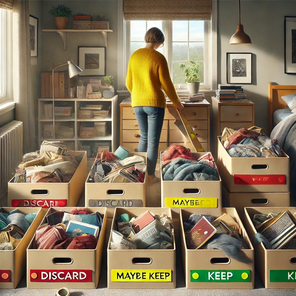 Swedish death cleaning has become a trend, but being thoughtful and methodical about going through possessions can be done at any age and stage of life. Some people like a system which offers direction about how to begin, such as tackling clothes first because they can be easier to sort through and may hold less sentimental meaning. Using a color coded system, such as red for discard, green for keep, and yellow for unsure, is a simple way of sorting, allowing even children to participate in the process.