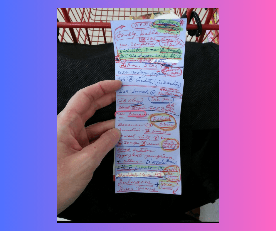 My mother’s lists were like a look inside her busy bee brain. It may have seemed like an oxymoron, but my mother’s chaotic organization style worked for her. That was fine until I became her caregiver and then I was the one responsible for interpreting her wacky roadmap.